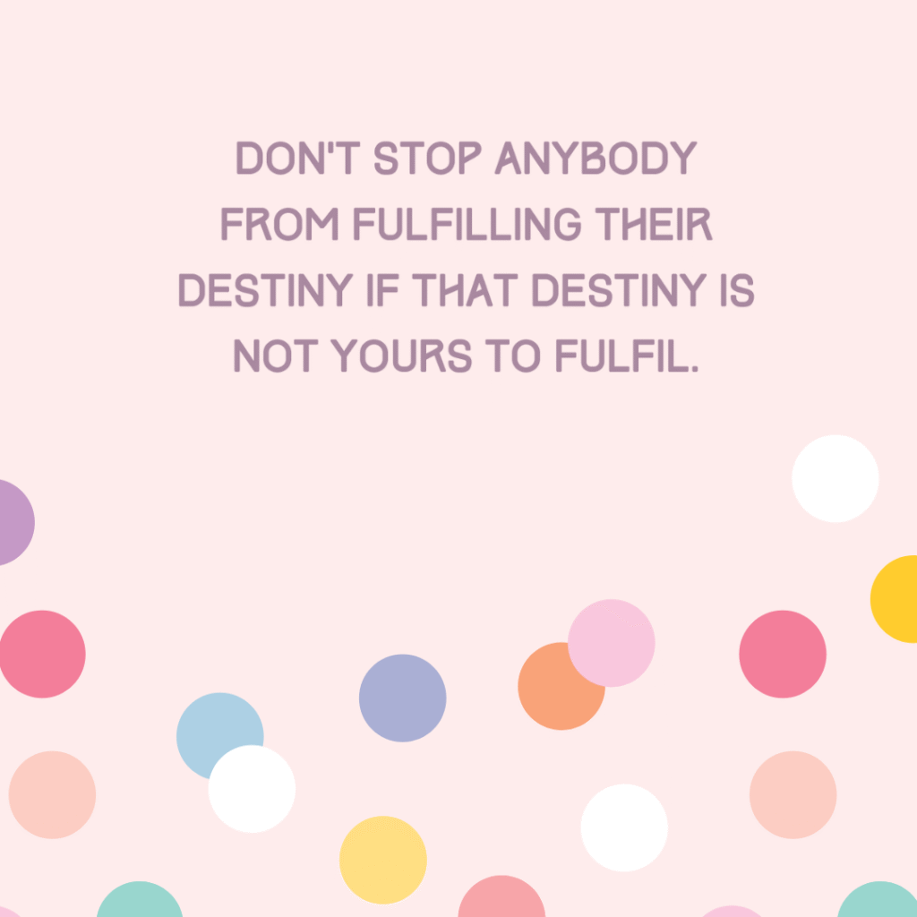 Don’t stop anybody from fulfilling their destiny if that destiny is not yours to fulfil.