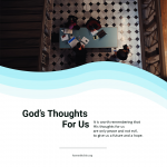 Many people attempt to apply verses 12-13 in their lives but regrettably forgot about verse 11, which can be a mistake. To fully experience verses 12-13 of Jeremiah 29, we need to first understand and be assured of verse 11 – which is what’s God’s thoughts for us.