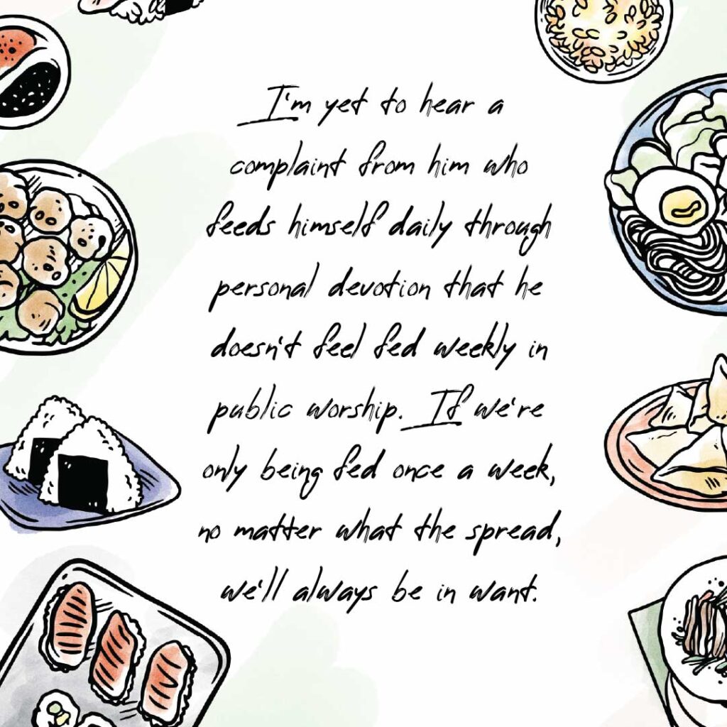 I’m yet to hear a complaint from him who feeds himself daily through personal devotion that he doesn’t feel fed weekly in public worship.